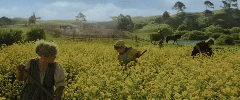 Next, the violas pick up the melody of the Hobbits — simple folk who love simple things: gardening, good food, relaxation, and most of all, peace.